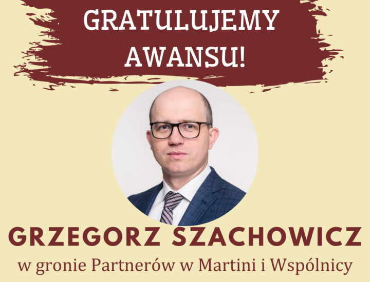 Grzegorz Szachowicz awansuje na stanowisko Partnera w Martini i Wspólnicy!